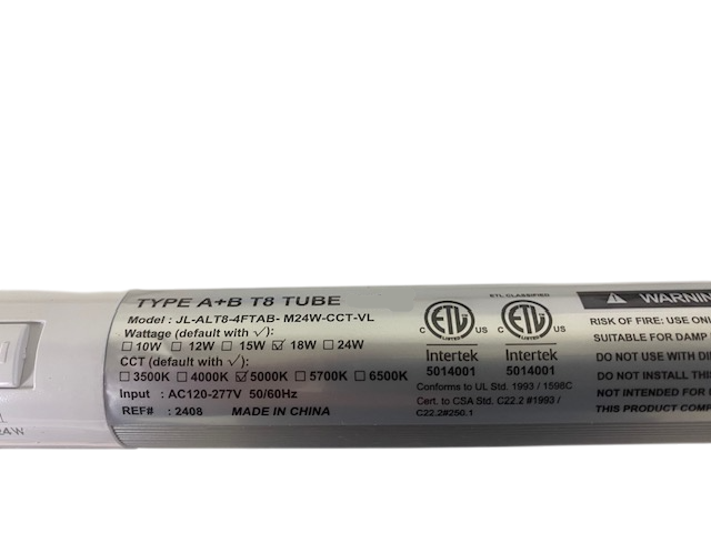 4ft G13 T8 3,240 Lumen (10w/12w/15w/18w/24w) WATTAGE ADJUSTABLE 135lm/W 5CCT (3500K/4000K/5000K/5700K/6500K) KELVIN ADJUSTABLE - FROSTED LENS - "ENERGY MISER"