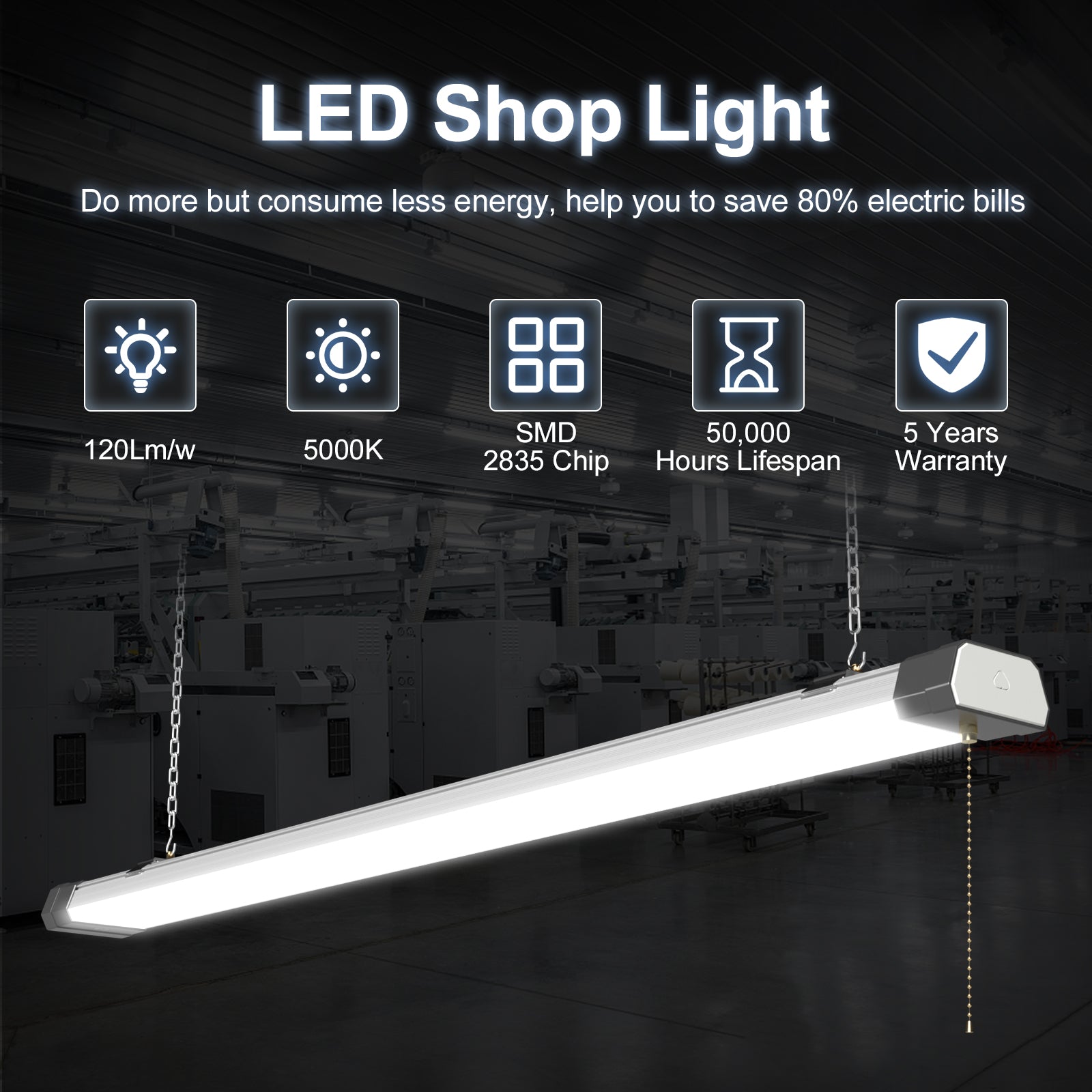 4ft 120W SHOP LIGHT 15,600lm - LINKABLE- W/PULL SWITCH - NO RF DRIVER